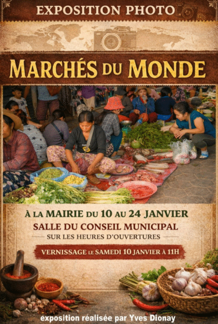 Du 10 au 24 janvier, venez profiter de l’exposition photo « Marchés du Monde » de Yves Dionay à la salle du conseil municipal de Breteil sur les heures d’ouvertures.