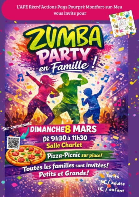 Récré’actions vous invite à sa Zumba Pizza Party ! Venez bouger, vous amuser et partager un moment convivial pour petits et grands dans une ambiance festive et rythmée. Zumba animée par Gaelles Coach Fitness !